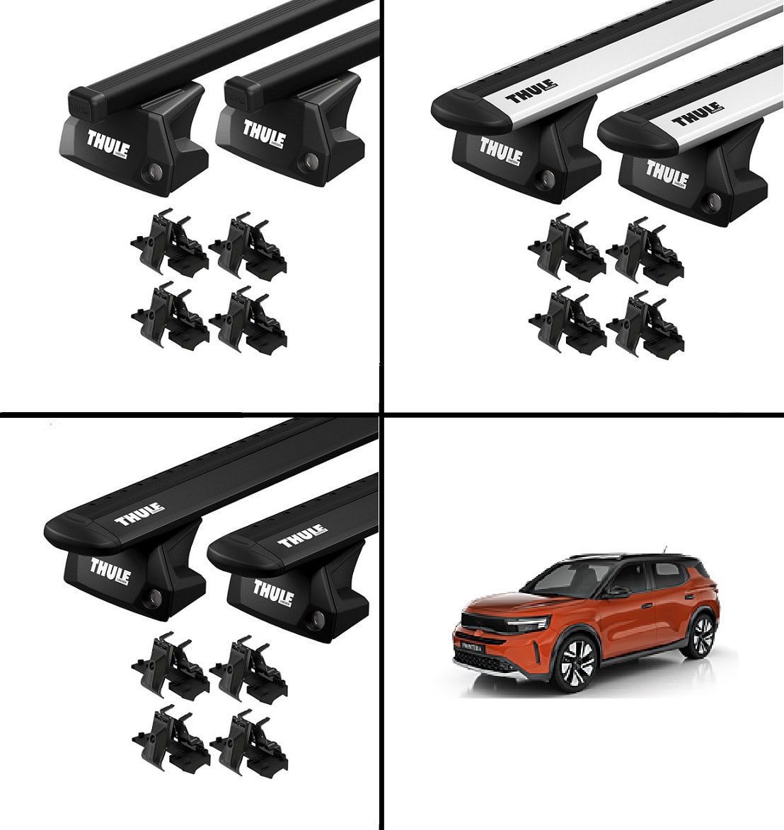 Dieser komplette Dachträger Opel Frontera vom Marktführer Thule ist passend ab Baujahr 2025- mit einer anliegenden Reling.
