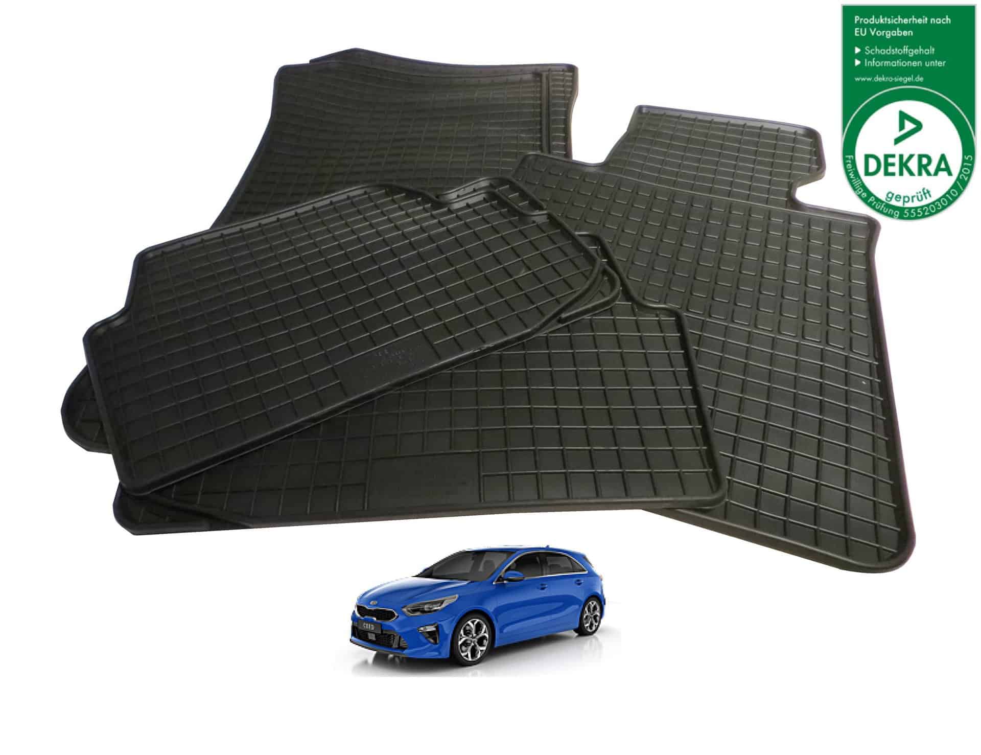 Es handelt sich um Gummimatten in Erstausrüsterqualität mit perfekter Passform für den Kia Ceed CD. Diese sind inklusive Befestigung an der serienmäßigen Fußmatten Halterung soweit diese vorhanden ist. Sie fangen sowohl Schmutz, Schnee, aber auch Dreck sowie jede Flüssigkeit dank des hohen Randes auf. Es sind zusätzliche Noppen an der Unterseite der Matten vorhanden, um ein Verrutschen im Fußraum zu vermeiden. Sie sind geruchsneutral und belästigen somit nicht Ihren gewohnten Fahrkomfort, dies ist durch die DEKRA überprüft und bestätigt.