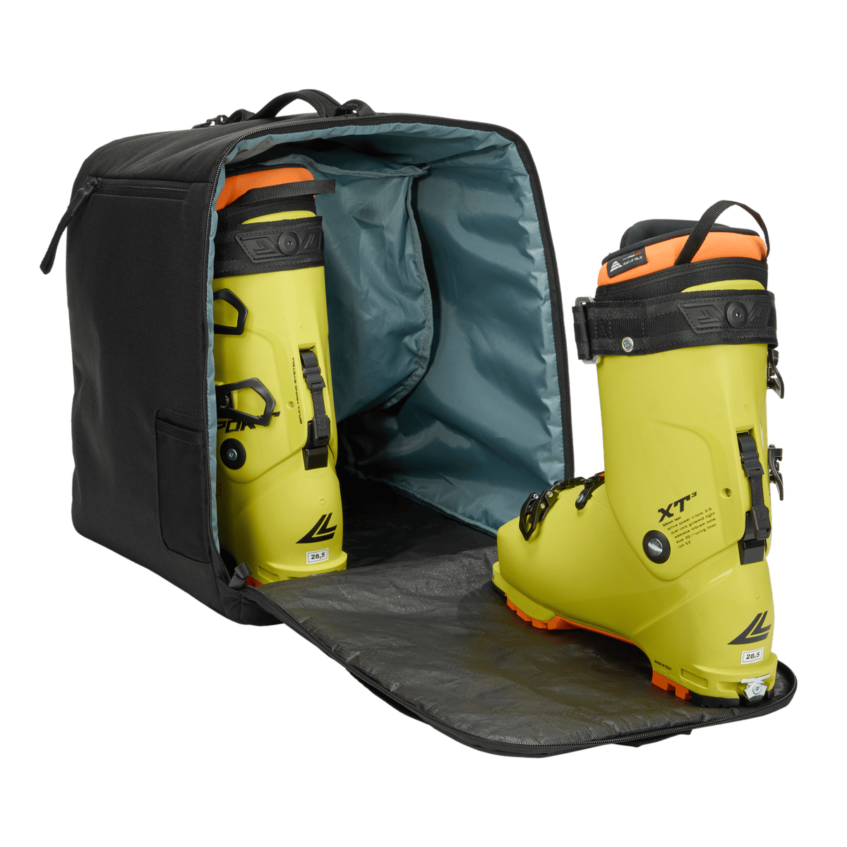 Der Thule Skischuh Rucksack 35 l Volumen vereint einerseits Aufbewahren als auch Transportieren der Skistiefel in einem. Im Fach auf der Rückseite finden die Schuhe Platz. Komfort spielt eine große Rolle, praktisches An- und Ausziehen von Stiefeln an jedem beliebigen Ort ohne nasse Füße zu bekommen. Kein Problem denn durch Herunterklappen der Rucksackklappe, kann diese als Standfläche genutzt werden. Ein weiterer Vorteil sind die 2 Seitentaschen, darin verstauen Sie immer leicht zugänglich Kleidungsstücke, Handschuhe und Zubehör. Es muss noch mehr mit, kein Problem die obere Tasche für Helm, Brille oder die Sonnenbrille, ist hierfür ideal.